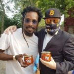 Meetup in Belgrade: R0ckstarDev and Johns Beharry displaying Bitko Yinowski’s famous Bitcoin jam made from Serbian apricots.
