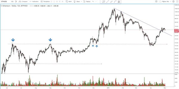 1. After finding support on the previous, macro trading range, ether managed to rally right through the downtrend where it is sitting on macro support.