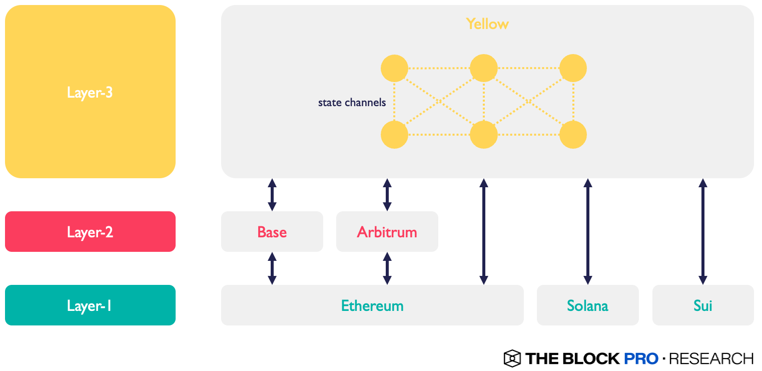At its core, Yellow is a Layer-3 mesh network composed of state channels, designed to abstract away the underlying blockchains. It provides a unified virtual ledger where applications interact seamlessly across chains.